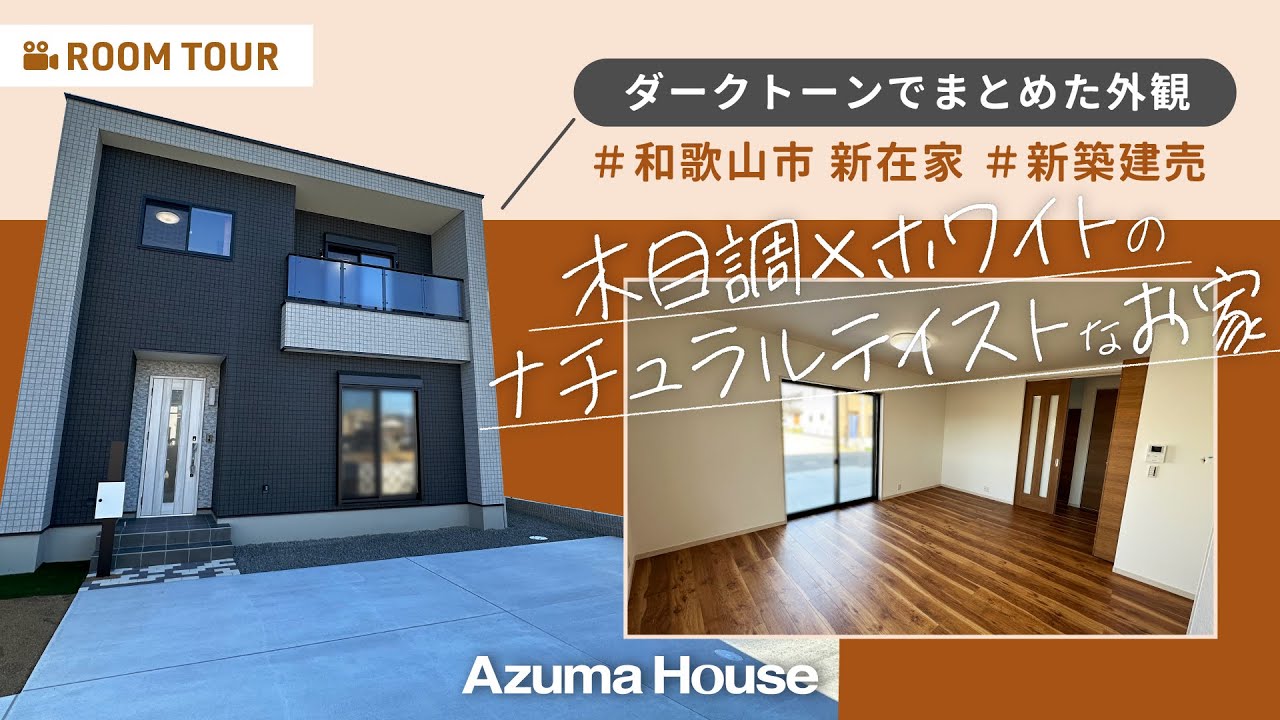 「【新築一戸建て×ルームツアー】ダークトーンでまとめた外観!/ 室内は木目調×ホワイトのナチュラルテイストに|新築建売|3LDK|和歌山市新在家|新在家Ⅶ11号地|和歌山ルームツアー|アズマハウス」