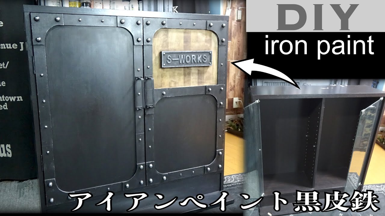 「ショーケースをアイアンペイント黒皮鉄でインダストリアル家具にリメイク」
