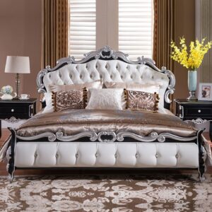 ヨーロピアンアンティークなレザーベッド ラグジュアリー ロイヤル プリンセス ベッドルーム 彫刻 姫系 かわいい クラッシック