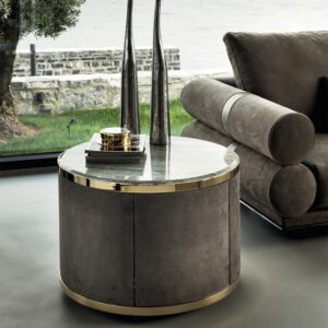 ベルベット素材のカスタマイズサイドテーブル(収納付) リビングルーム 小型丸テーブル 木目素材 石目素材 豪華